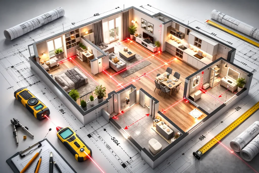ჩვენი აზომვითი სამუშაოები ხორციელდება თანამედროვე ლაზერული ტექნიკის გამოყენებით, რაც უზრუნველყოფს მაქსიმალურ სიზუსტეს.