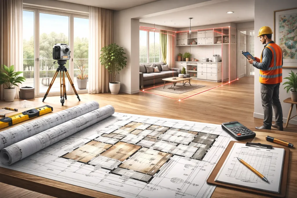 ობიექტზე ვიზიტი – პროფესიონალი ინჟინერი სტუმრობს ობიექტს და ატარებს სრული სივრცის აზომვას.